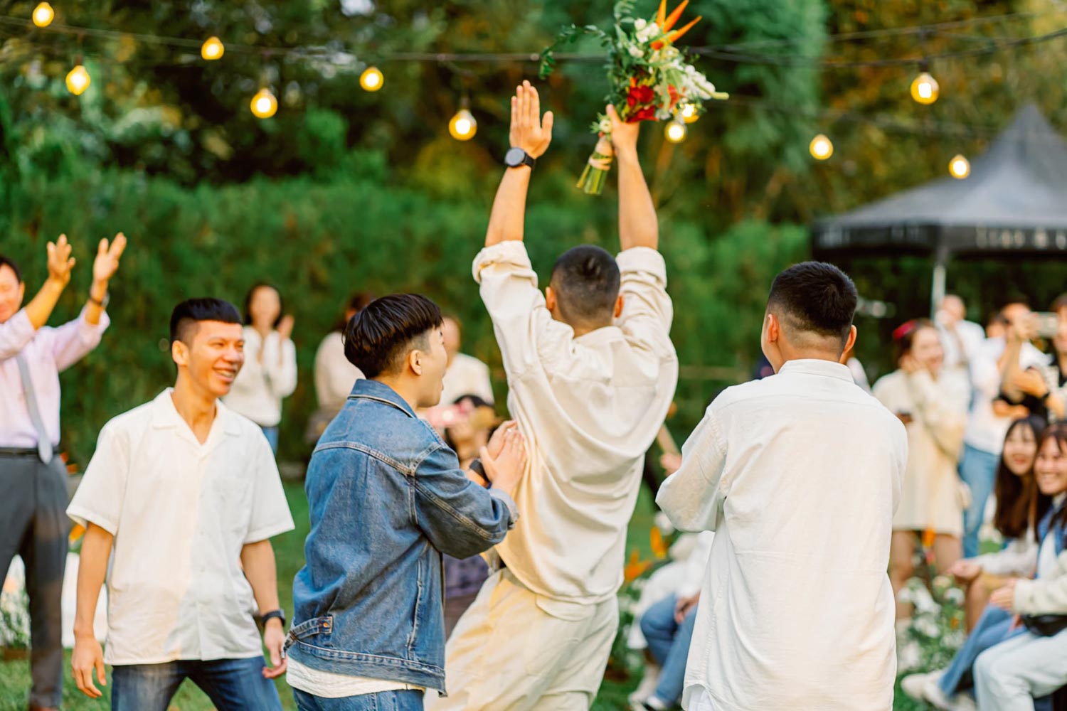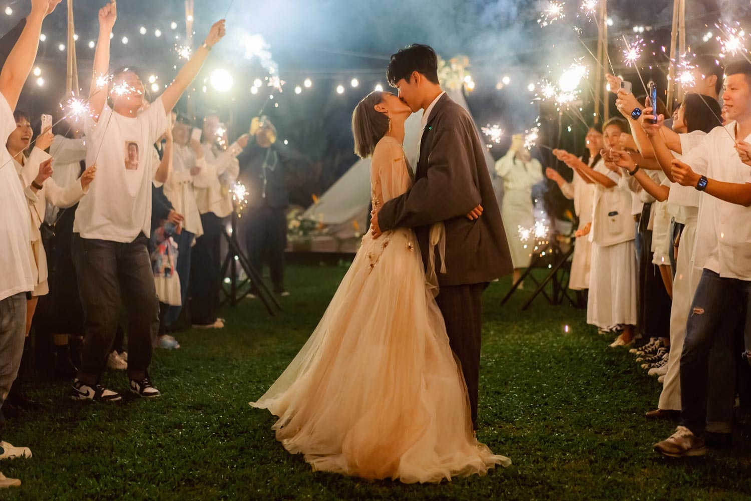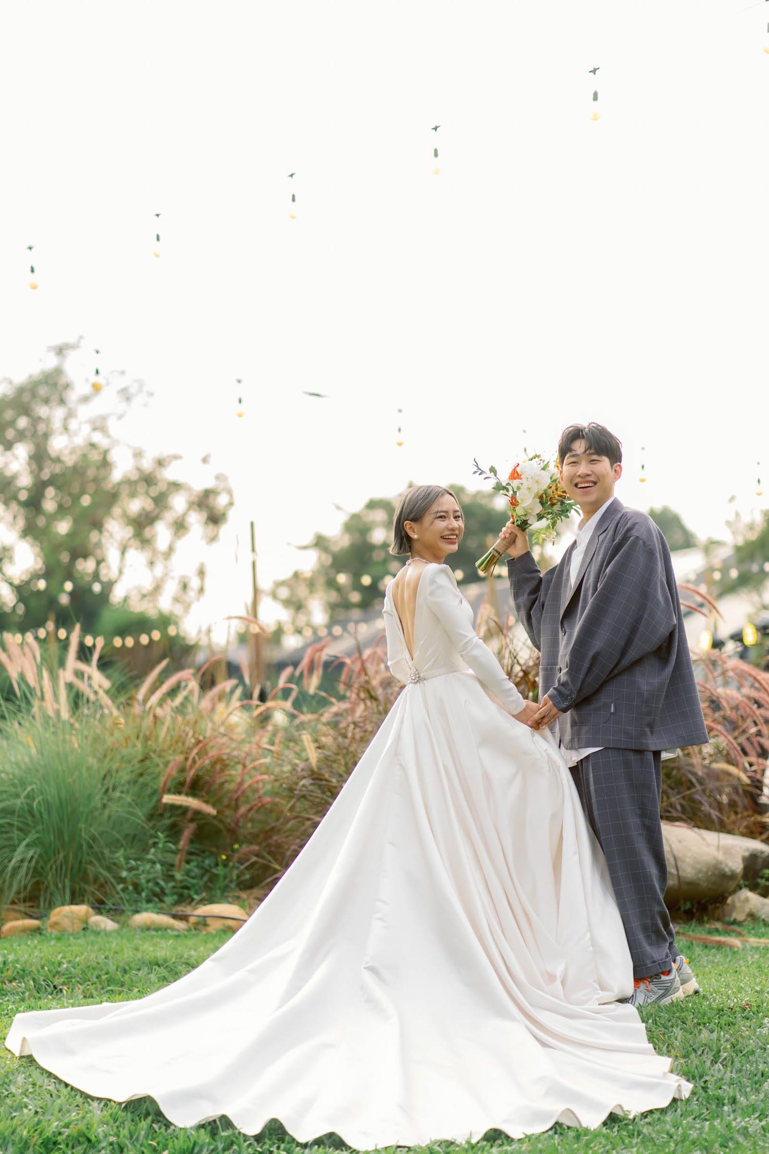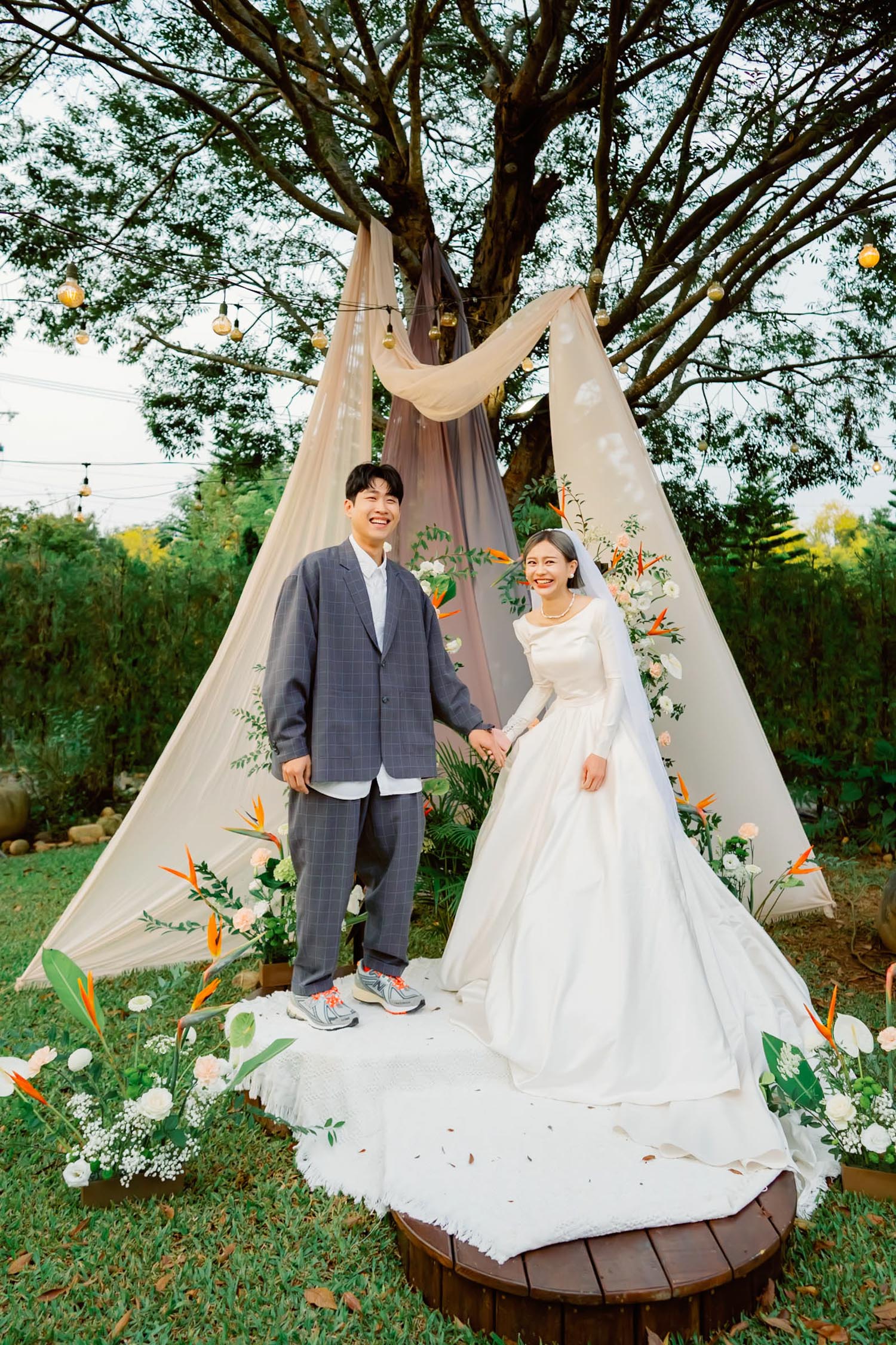 而你們的自在與獨特 踏著New balance 踩著輕盈的腳步 在露營地中的美式小婚禮 說出幽默讓眾人會心一笑的誓言: 「妳是電,妳是光,妳是唯一的神話 :D」