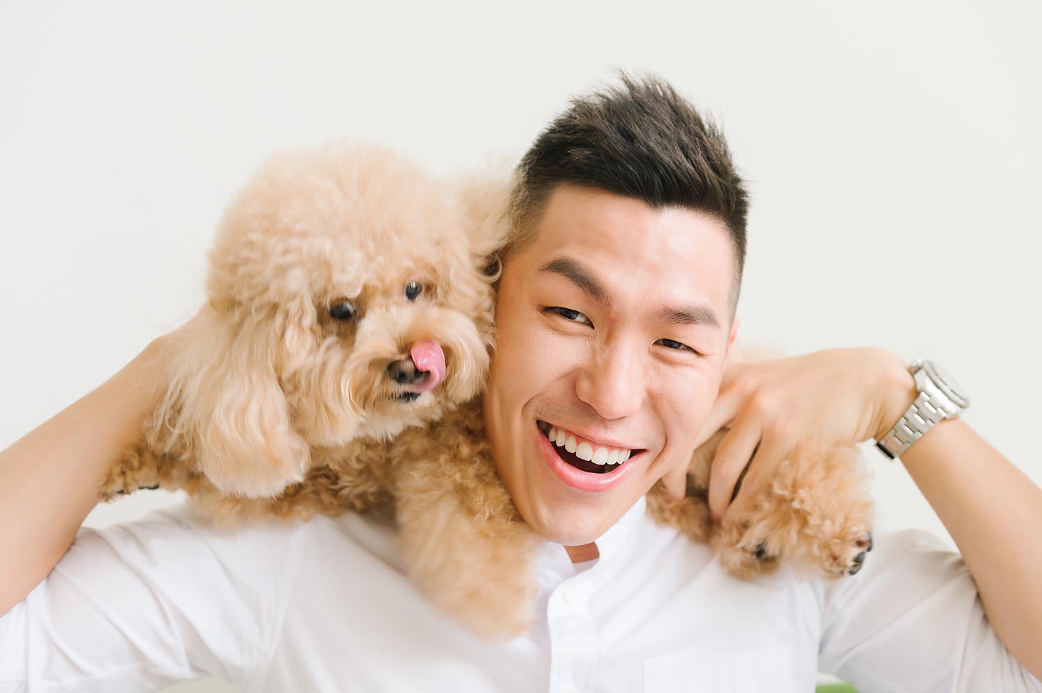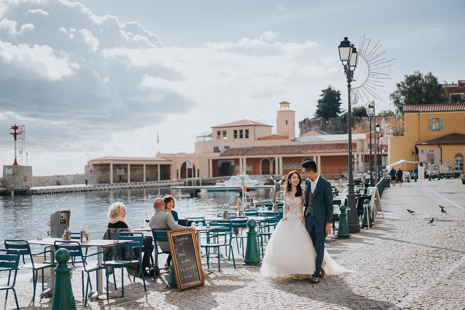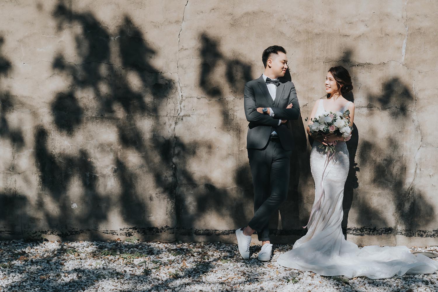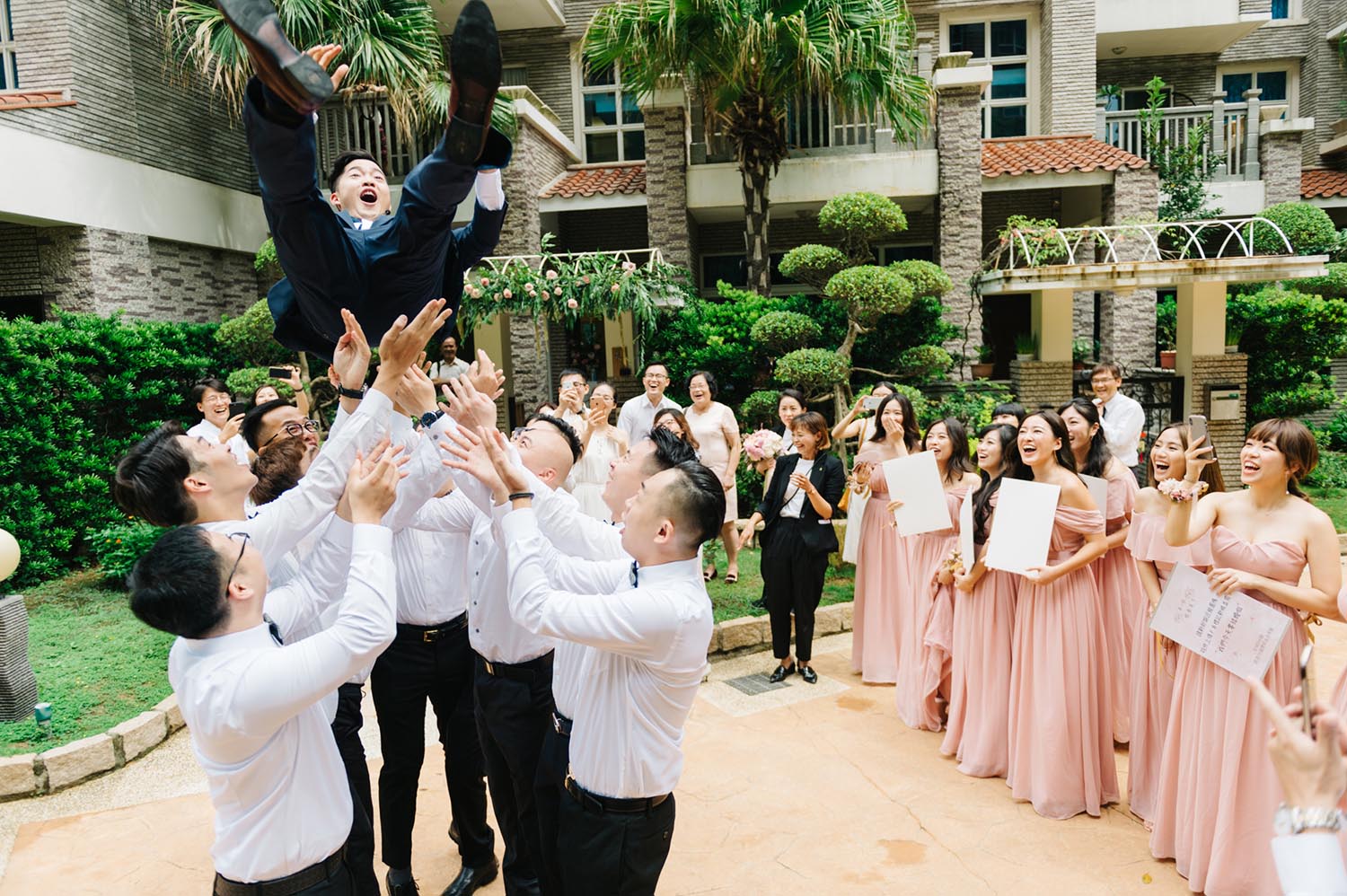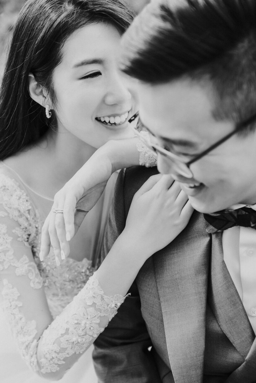 戶外高溫37度豔陽下,一整天的婚紗拍攝真的很累人。但 Nick 非常敬業,一直到最後一刻還是超嗨,即使我笑累笑僵,他還是能捕捉到稍縱即逝的燦笑,收工吃飯時也看不出疲態。看到毛片之後真的驚為天人!光是毛片就 超!美!