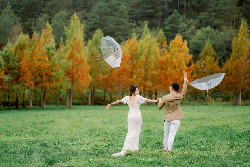 秋天拍婚紗 的浪漫元素 : 楓葉、雲海、夕陽等